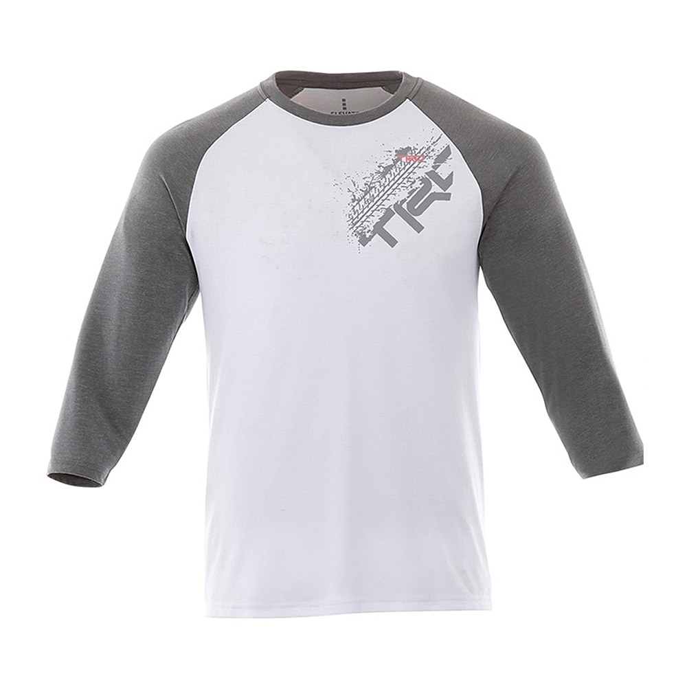 This three quarter tee has a classy sporty look, with a crew neck and rib knit collar.