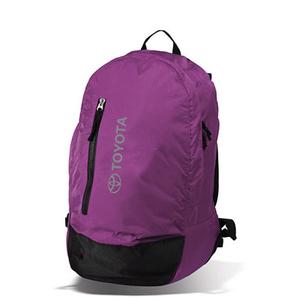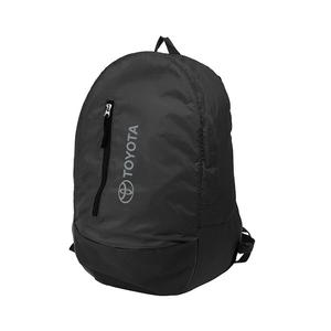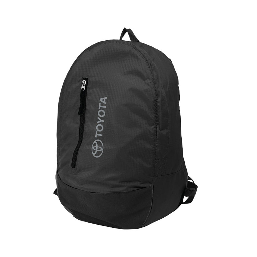 Spacious, lightweight and water resistant backpack. 210D ripstop fabrication with 1680D black trim. Zippered pocket on front, one main zippered compartment, with padded shoulder straps for back support.