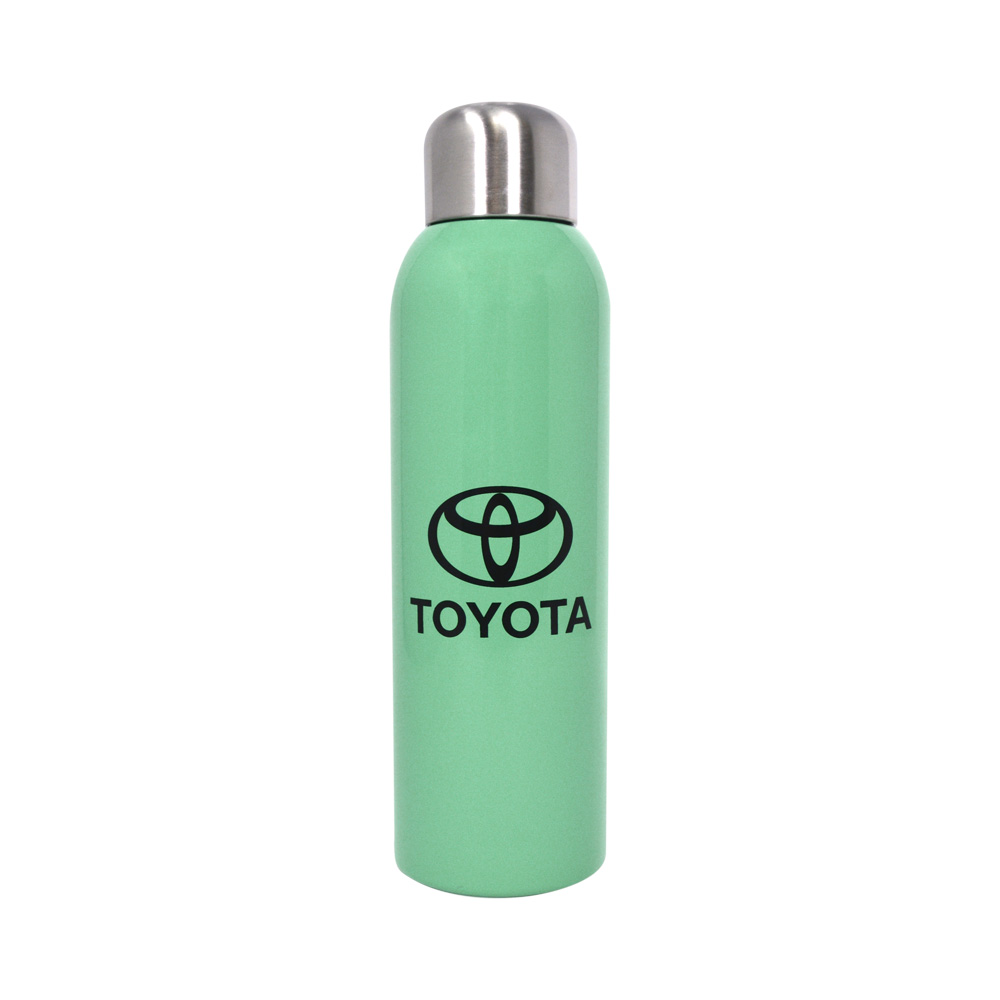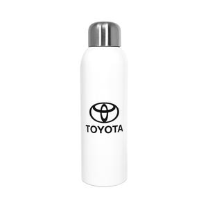 The 28oz Stainless Sports Bottle features single-wall construction and stainless steel screw-on lid. Hand wash only and follow any included care guidelines. Includes the Toyota logo on bottle.