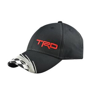 Grand Prix flare polycotton cap. 6-panel structured construction with curved bill. Self cloth back strap with Velcro® closure.Includes the TRD logo embroidered on front of cap.