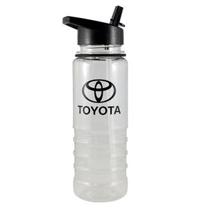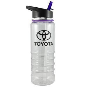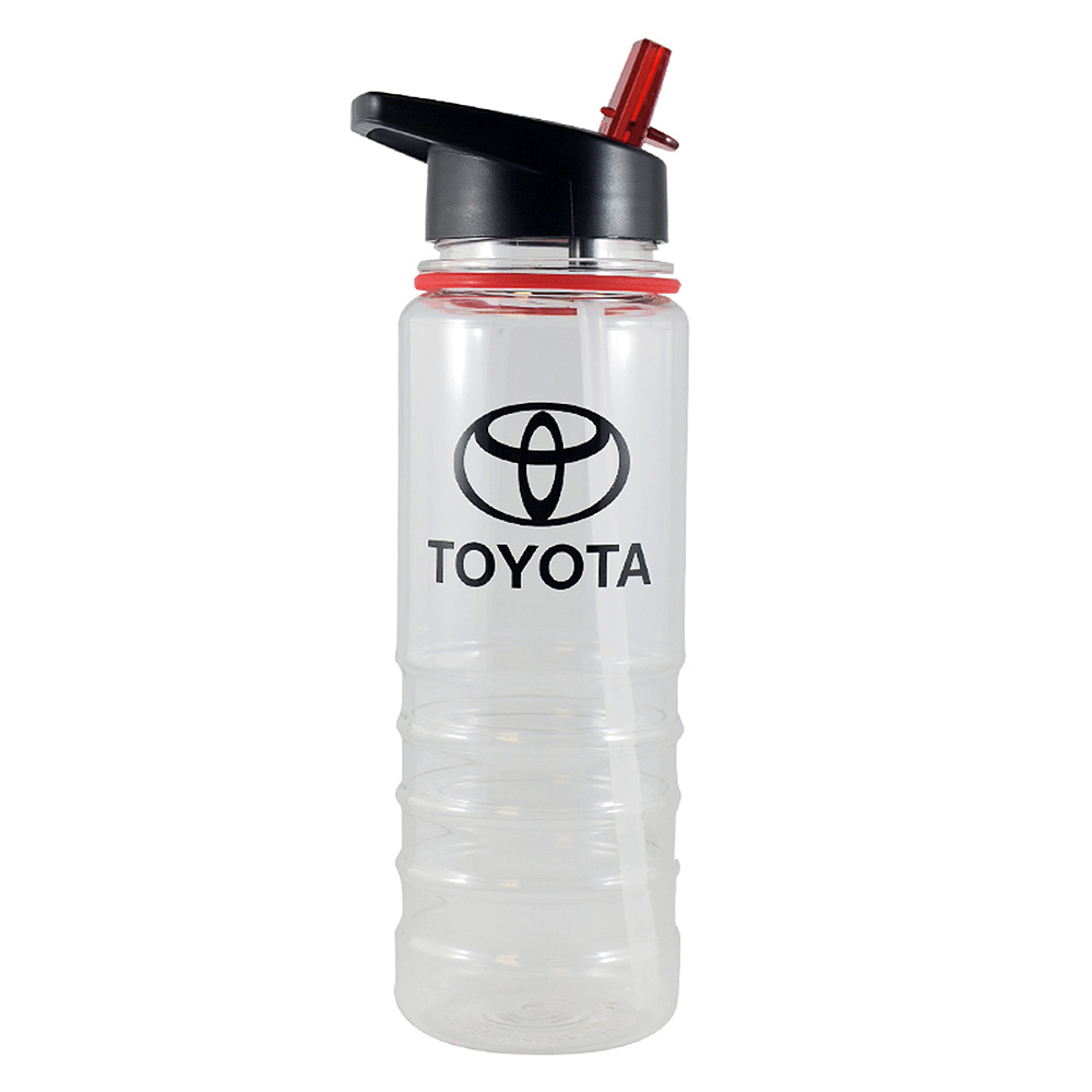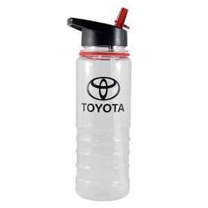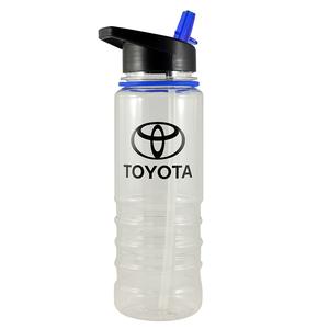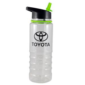 BPA free 28 oz. clear Champion water bottle features an easy-flip sport spout with detachable sipping straw and wide mouth opening for ice cubes.