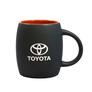 Enjoy your morning coffee or tea in this sleek matte black ceramic 14oz barrel mug. The ergonomic c-handle provides a comfortable, reliable hold on your beverage.